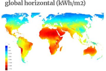Os custos de produção da electricidade fotovoltaica, fundamental para a produção de hidrogénio verde, variam não apenas com os preços das tecnologias de captação, mas, também, com a intensidade da radiação solar em função da latitude e grau de nebulosidade média, como se constata nas Figuras 4 e 4.1, sendo mais altos em grande parte da Europa, dos USA e Japão, e, pelo contrário, mais baixos, no Norte e Sul de África, Médio Oriente, Índia, grande parte da China, América central e a faixa ocidental da América do Sul, e, ainda, a Austrália.