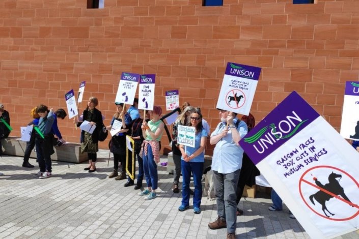 Brian Smith, responsável da Unison, disse aos Glasgow Times: «Os protestos estão a ganhar ritmo e temos o apoio de toda a comunidade artística e de muitas sociedades e associações amigas que apoiam os museus.» Apelou ainda à participação de todos no protesto marcado para amanhã.