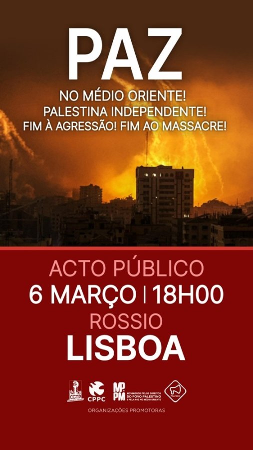 No documento ontem publicado, o MPPM insta ainda a opinião pública portuguesa a não desfalecer no seu apoio solidário à causa do povo palestiniano, bem como a exigir ao Governo que assuma as responsabilidades que lhe incumbem, nomeadamente por estar obrigado ao cumprimento da Constituição da República Portuguesa, e «acima de tudo por ser uma emanação do regime democrático nascido da Revolução dos Cravos com a responsabilidade histórica de dar corpo aos seus ideias de liberdade, de justiça e de solidariedade».