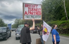 Créditos / cbc.ca CanadáCanadianos solidários impedem navio israelita de atracar Um grupo de dez pessoas formou um piquete no Porto de Prince Rupert, esta segunda-feira, para impedir um navio porta-contentores israelita de atracar. Os estivadores mantiveram-se firmes. 16 de Junho de 2021