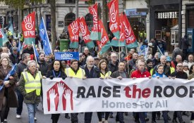 Créditos Fergal Phillips / independent.ie IrlandaMilhares em Dublin pelo direito à habitação Nas ruas da capital irlandesa foi reforçado o alerta para a crise da habitação, num contexto de preços incomportáveis, com mais pessoas em situação de rua e mais jovens a encarar a perspectiva de emigrar. 29 de Novembro de 2022