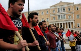 Créditos Alexandros Vlachos / EPA GréciaFortes protestos em Atenas contra novas medidas de austeridade O Parlamento grego aprovou, esta quinta-feira, mais um corte nas pensões e uma nova subida nos impostos. A oposição popular a este «quarto memorando» foi visível tanto na greve geral de quarta-feira como na manifestação de ontem, na capital. 19 de Maio de 2017