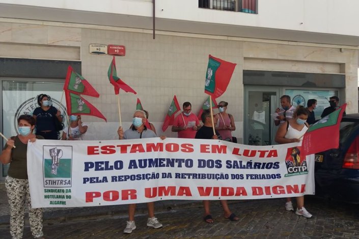 De manhã, junto à Associação dos Hotéis e Empreendimentos Turísticos do Algarve (AHETA) e, à tarde, frente à Associação dos Industriais Hoteleiros e Similares do Algarve (AIHSA), vários trabalhadores e dirigentes do Sindicato da Hotelaria do Algarve (CGTP-IN) reivindicaram melhores salários e condições de trabalho.