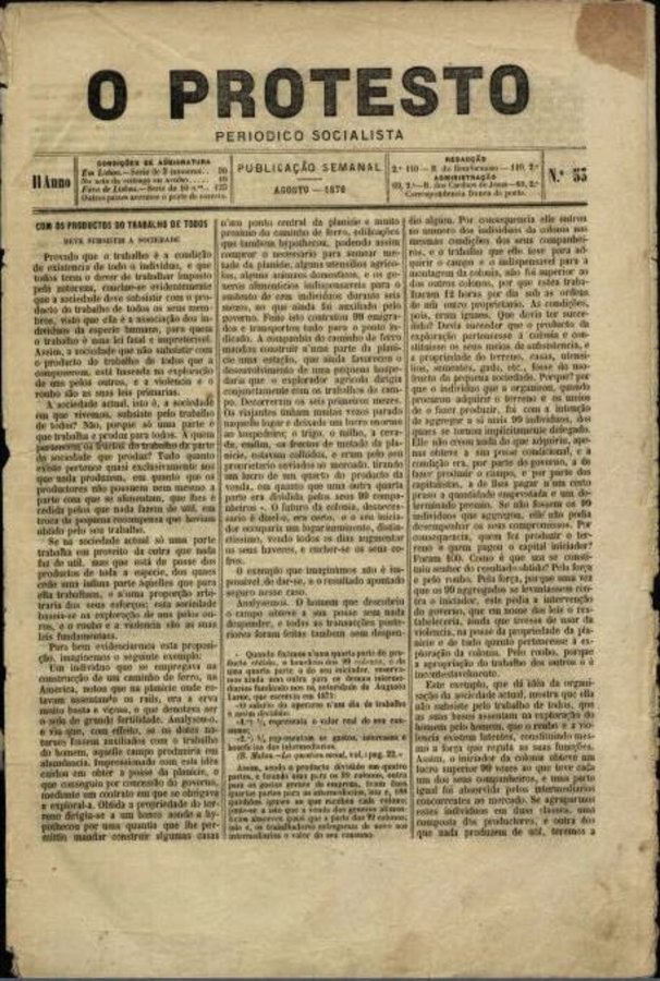 O Protesto (na foto o número do ano II, n.º 53, de Agosto de 1876) foi um dos jornais fundados por Azedo Gneco Créditos
