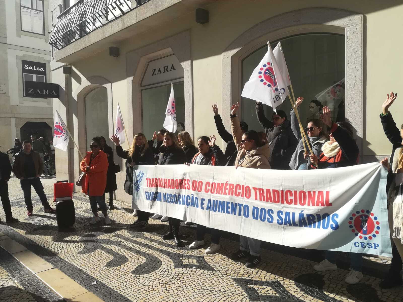 Trabalhadores do comércio manifestam-se por melhores salários à porta da Zara. Lisboa, Fevereiro de 2023
