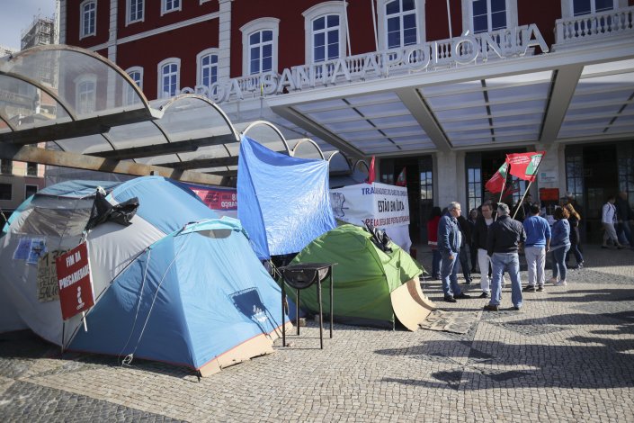 Recorde-se que, desde o passado dia 1 de Março, os trabalhadores dos bares dos comboios estiveram acampados em frente às estações de Santa Apolónia, em Lisboa, e de Campanhã, no Porto, depois de, no mês anterior, a Apeadeiro 2020, empresa que há dois anos explorava o serviço dos bares e refeições dos comboios de longo curso da CP, os ter informado de que não seria capaz de lhes pagar o salário do mês de Janeiro a tempo, devido a um arresto de contas por dívidas à Autoridade Tributária (AT). O AbrilAbril passou uma noite com os trabalhadores, na Estação da CP de Santa Apolónia, onde foram vincadas as dificuldades sentidas por estes trabalhadores e respectivas famílias.