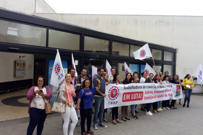 O Sindicato dos Trabalhadores do Comércio, Escritórios e Serviços (CESP/CGTP-IN) realizou, na manhã de ontem, uma acção de denúncia no Continente de Telheiras (Lisboa). São vários os motivos que levam os trabalhadores a «dar a cara», disse o sindicato em nota à imprensa, seja a negociação do contrato colectivo de trabalho (CCT), o aumento dos salários ou o encerramento do comércio aos domingos e feriados.