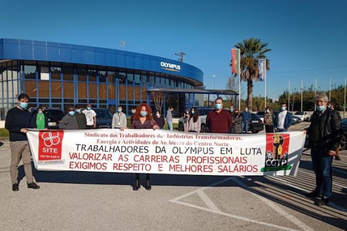 Com forte adesão, na sexta-feira, dia 20, também os trabalhadores da Olympus Service Facility Portugal, sediada em Coimbra, iniciaram uma greve de uma hora, que se repete durante cinco dias e é acompanhada de concentrações em frente das instalações da empresa.