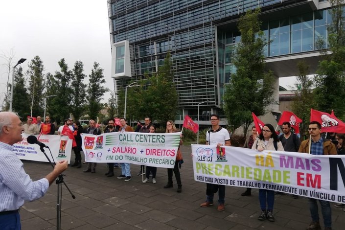 Integrada na semana de combate à precariedade, iniciativa da CGTP-IN que decorrerá de 2 a 6 de Dezembro, os três sindicatos que representam os trabalhadores dos centros de contacto das empresas telecomunicações irão realizar uma concentração, no Ministério do Trabalho, onde será entregue ao Governo um documento a exigir que a cada posto de trabalho permanente corresponda um vínculo de trabalho efectivo com a empresa utilizadora.